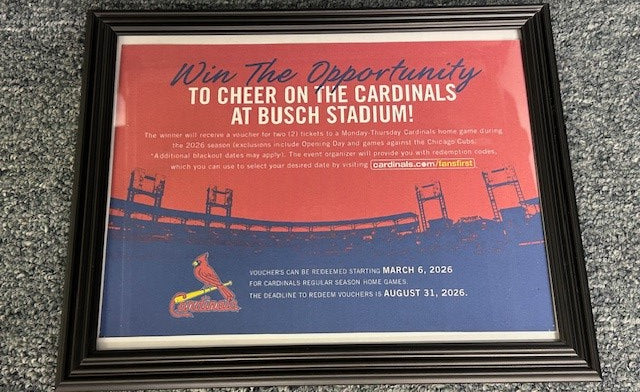 The winner will receive a voucher for two tickets to a Monday - Thursday Cardinals home game during the 2026 season (exclusions include Opening Day and games against the Chicago Cubs. Additional blackout dates may apply). The event organizer will provide you with redemption codes, which you can use to select your desired dates by visiting cardinal.com/fansfirst. Vouches can be redeemed starting March 6, 2026 and the deadline to redeem the voucher is August, 31, 2026.